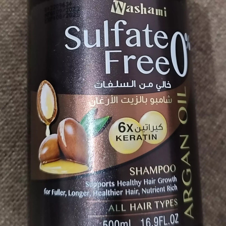 شامپو کراتینه واشامی محصولی کاملا اورجینال ساخت کشور امارات حجم ۵۰۰ میل مخصوص موهای کراتینه و رنگ شده حاوی روغن آرگان