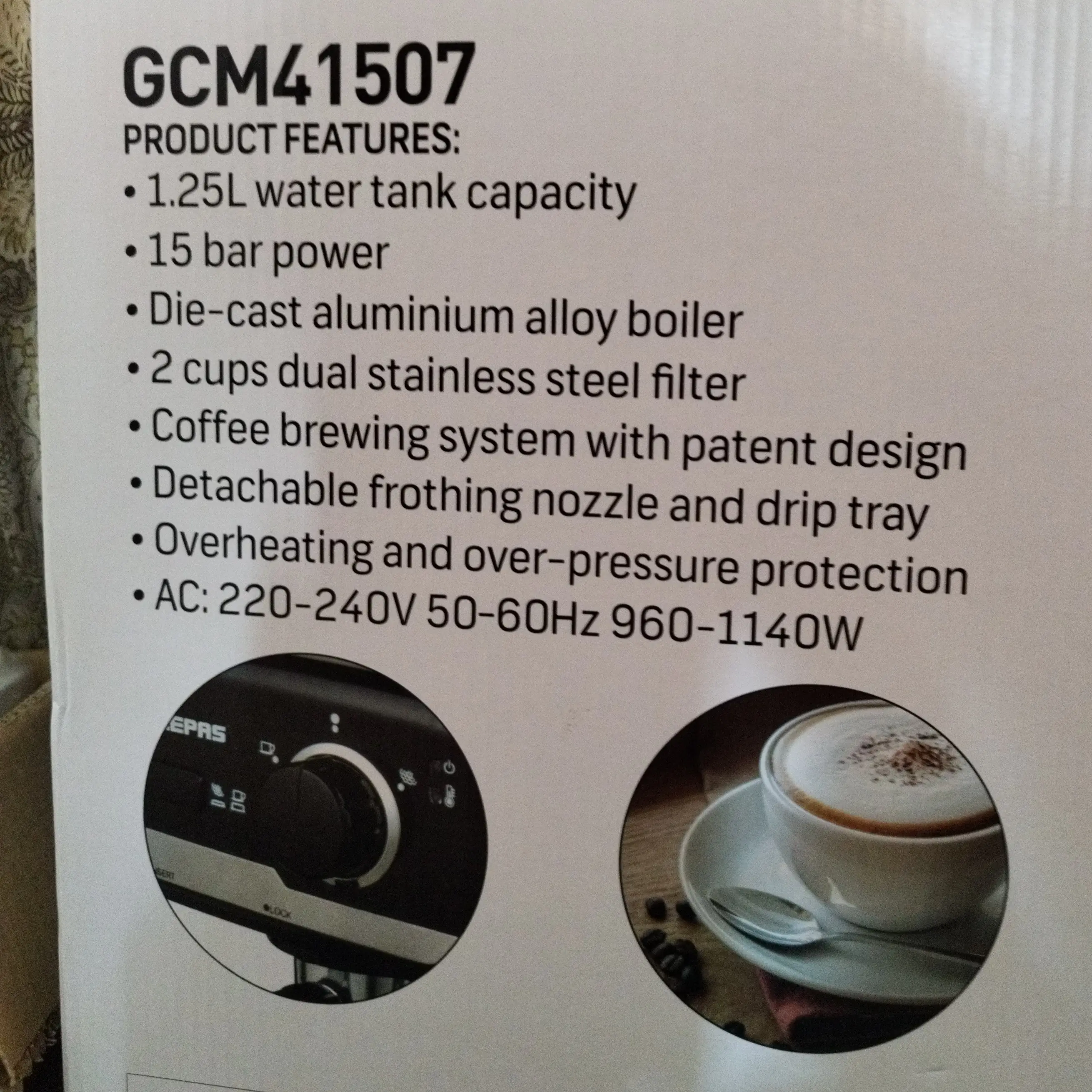 قهوه ساز جیپاس GCM41507 فشار بخار15 بار توان 1140 وات